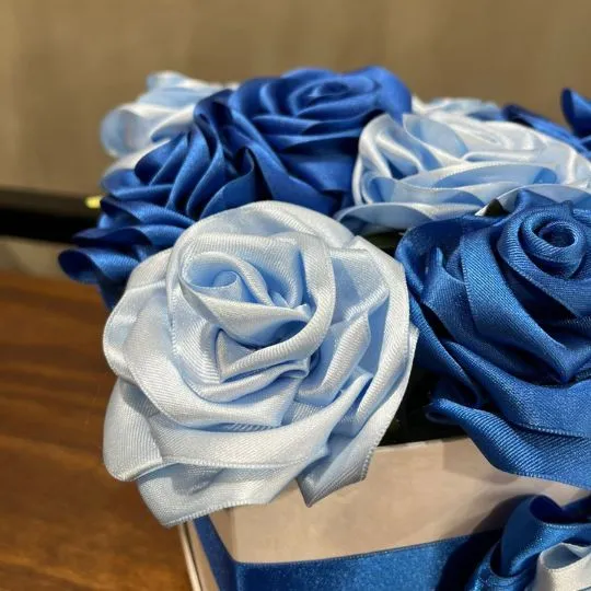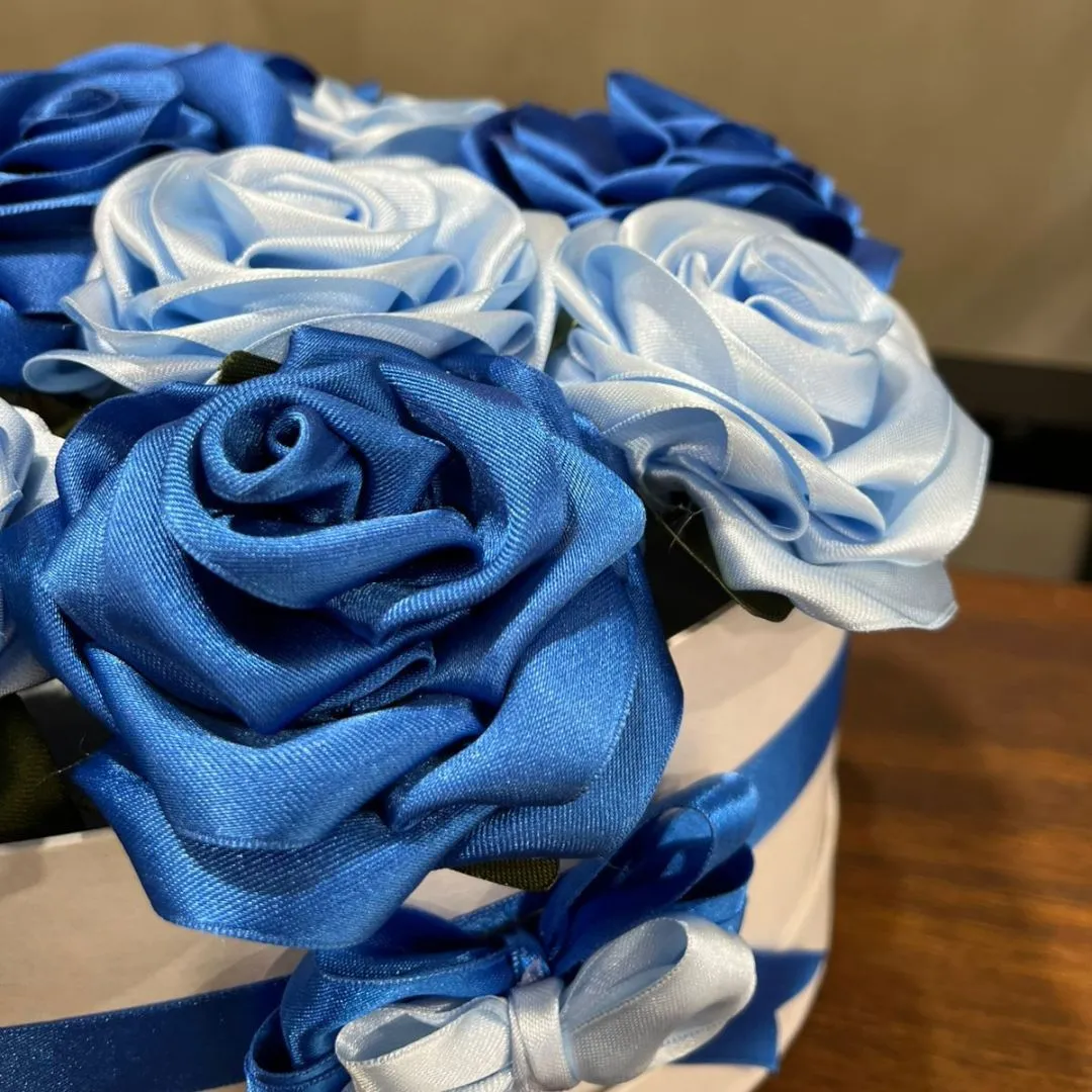 Sorprendé con un regalo único, elegante y lleno de significado. Este delicado box está compuesto por rosas artesanales realizadas a mano, confeccionadas en suaves tonos celeste y azul, que transmiten calma, armonía y sofisticación.