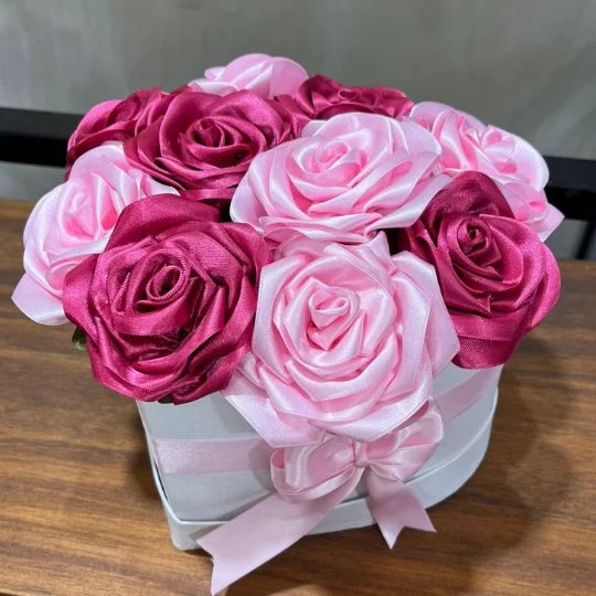 Sorprendé con un regalo único, elegante y lleno de significado. Este delicado box está compuesto por rosas artesanales realizadas a mano, confeccionadas en suaves tonos rosas y bordo que transmiten calma, armonía y sofisticación.