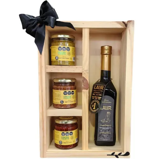 Un obsequio que combina elegancia, sabor y calidad en una presentación única. Cada detalle de este box fue pensado para transmitir calidez y distinción: una cuidada selección de productos artesanales presentada en una caja de madera natural con moño decorativo.