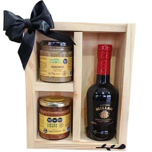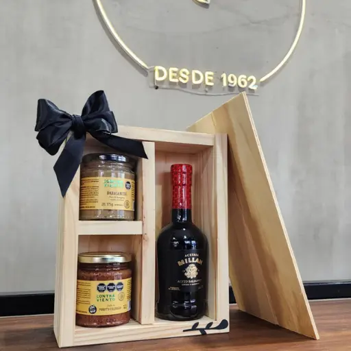 Un detalle clásico y sofisticado que combina sabores artesanales con una presentación refinada. Este box gourmet está pensado para quienes valoran la calidad y los regalos con estilo: elaborado con ingredientes seleccionados y presentado en una elegante caja de madera con moño negro.