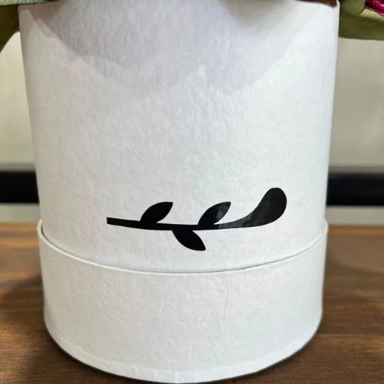Las flores se presentan en una caja rígida blanca tipo sombrerera, con diseño minimalista y detalles delicados, ideal para realzar el protagonismo de las rosas y convertirlo en un regalo de alto nivel estético.