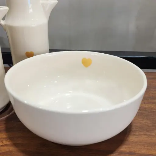 El combo incluye:✔️ Ensaladera de cerámica con detalle de corazón, amplia y resistente