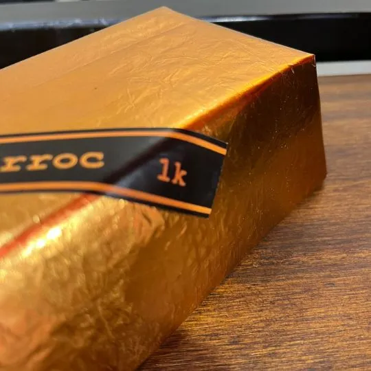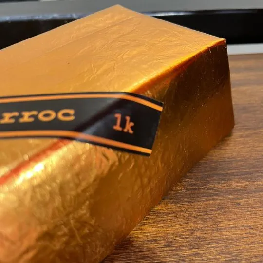 Sorprendé con un regalo original y tentador: un lingote de Marroc de 1 kilo, presentado en formato dorado tipo “barra de oro” que impacta a primera vista.