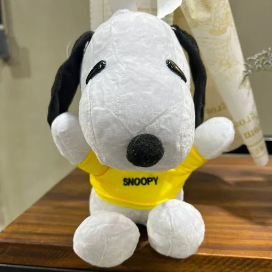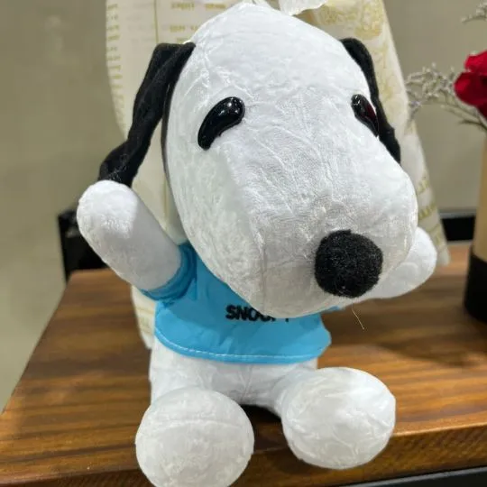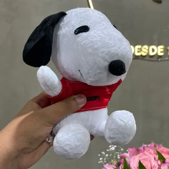 Sumá ternura a cualquier regalo con este adorable peluche de Snoopy, el perrito más querido del mundo. Confeccionado en tela suave y esponjosa, viene sentado, con sus clásicas orejitas negras, ojos brillantes y una remera azul,amarilla o roja que le da un toque aún más encantador.