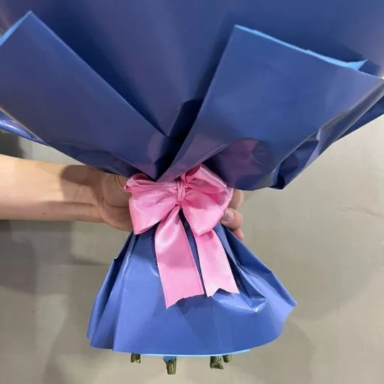 Las flores de raso imitan la forma y textura de una rosa natural, pero con la gran ventaja de que no se marchitan, por lo que este ramo se convierte en un recuerdo eterno. El envoltorio en capas de papel decorativo y malla le aporta un estilo moderno y elegante, perfecto para regalar en cualquier ocasión especial.