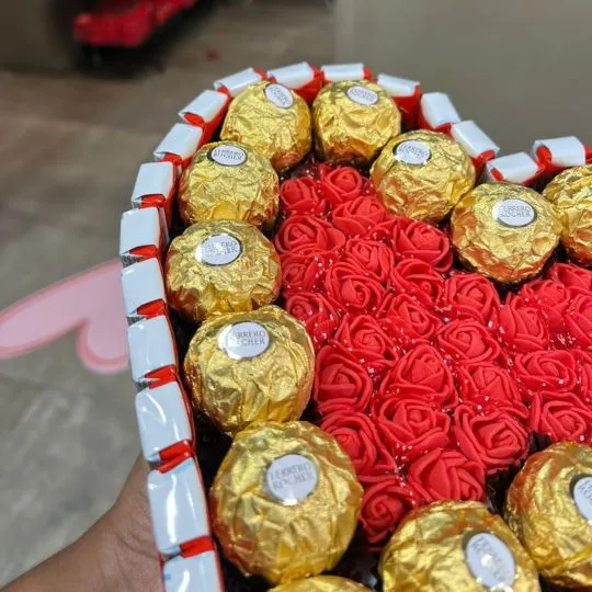 Sorprendé con un regalo que lo tiene todo: amor, dulzura y una presentación espectacular. Este hermoso box en forma de corazón combina lo mejor de dos mundos: rosas rojas eternas en el centro y una exquisita selección de chocolates premium alrededor.