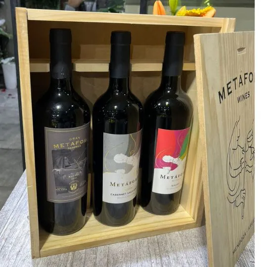 Vinos Metafora x3 estuche de madera