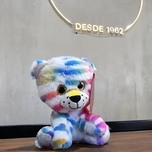 Este encantador peluche está diseñado para robar corazones. Con su mirada brillante y dulce, su carita expresiva y su textura ultra suave, transmite ternura desde cualquier rincón donde lo pongas. Las patas con detalles tornasolados le dan un toque mágico y moderno, que lo hace destacar entre cualquier colección o como un regalo especial.Ideal para sorprender en cumpleaños, nacimientos, aniversarios, o simplemente para decir “te quiero” con un mimo que dura para siempre. Es liviano, de excelente calidad y está confeccionado con materiales hipoalergénicos, por lo que es apto tanto para adultos como para los más pequeños de la casa.
