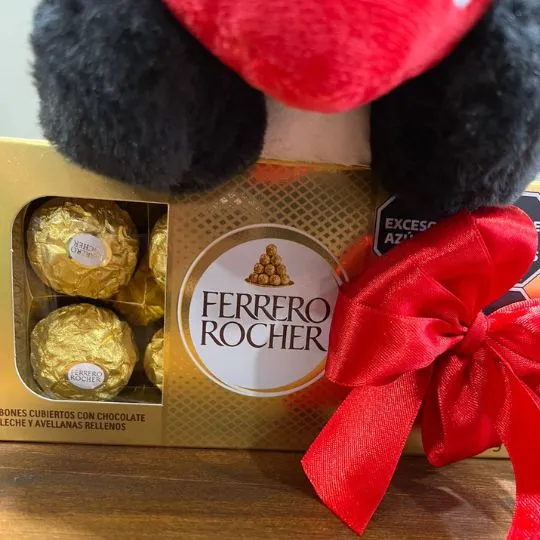 Bombones rocher con peluche y globo
