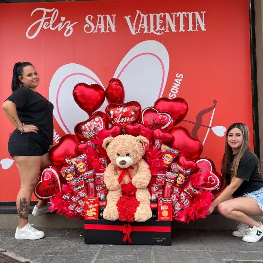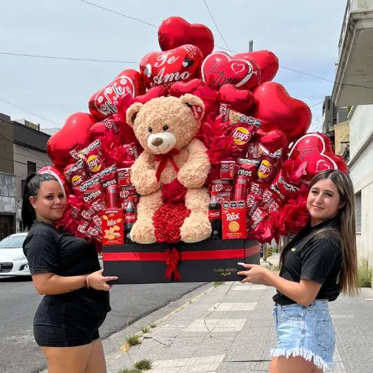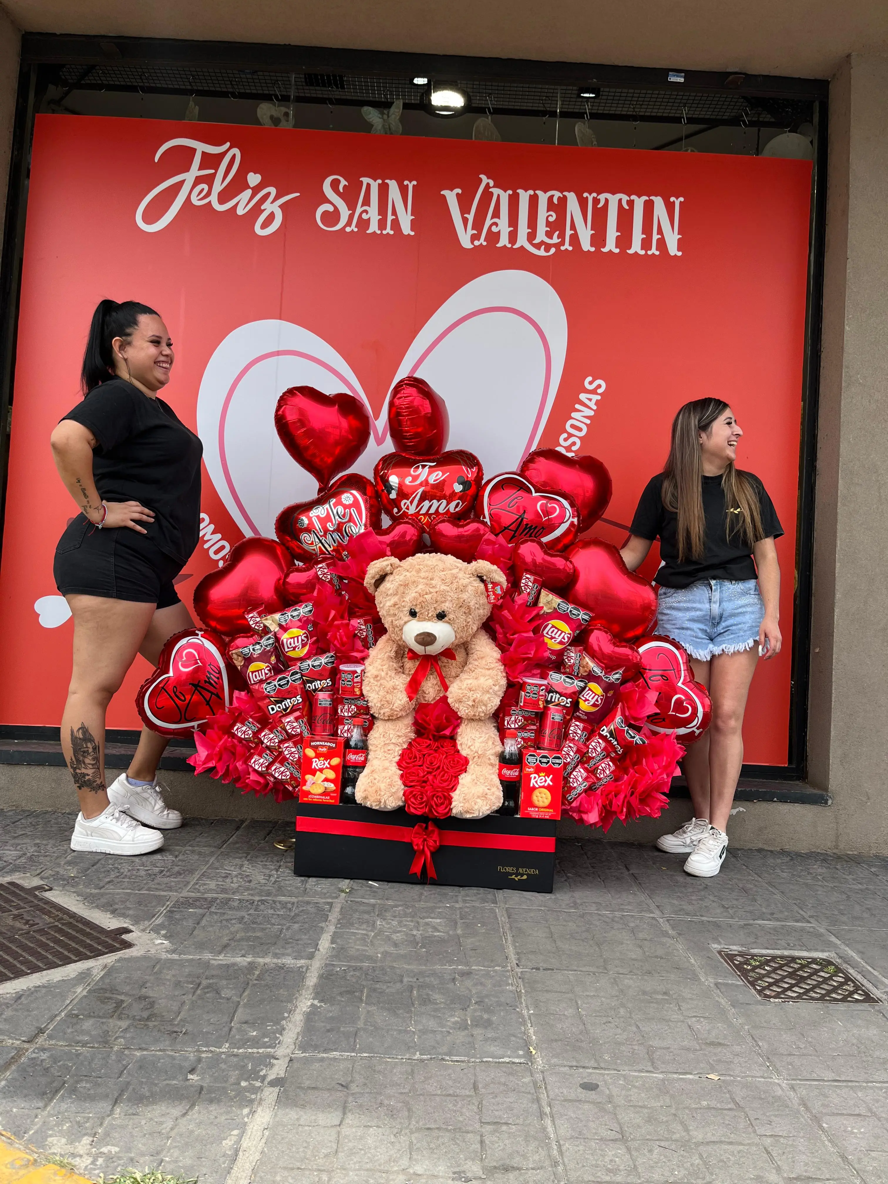 Sorprendé en grande con este arreglo mega gigante, ideal para quienes quieren un regalo impactante, lleno de amor y dulzura. Una propuesta imponente, súper abundante y visualmente espectacular, perfecta para dejar sin palabras a esa persona especial.