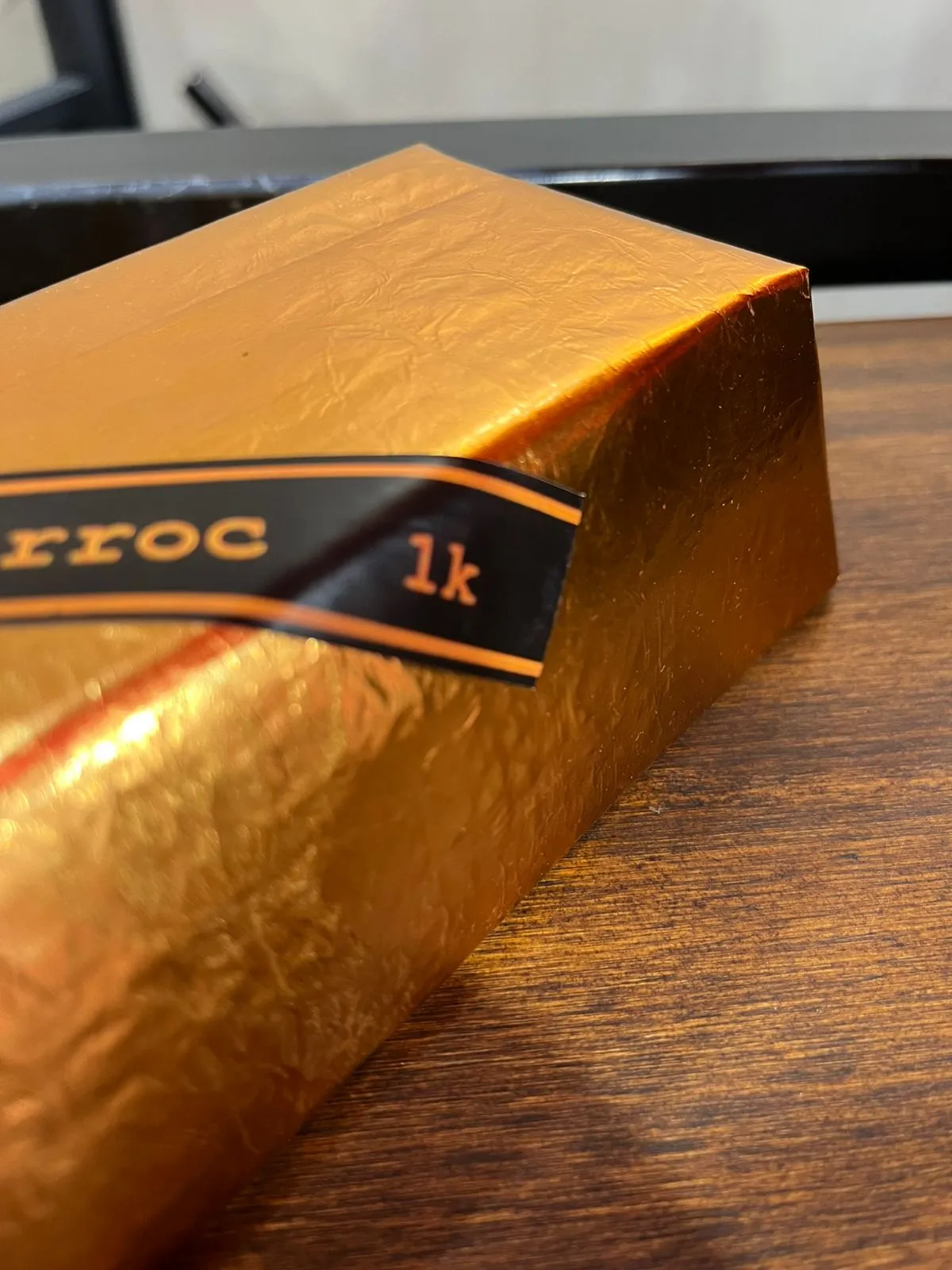 Sorprendé con un regalo original y tentador: un lingote de Marroc de 1 kilo, presentado en formato dorado tipo “barra de oro” que impacta a primera vista.