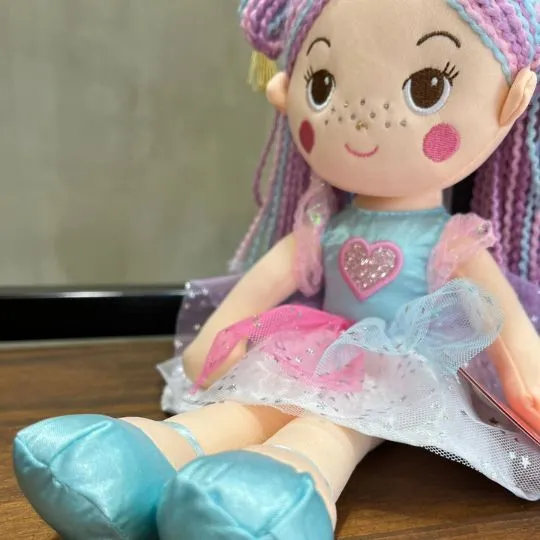Nuestra Muñeca Arcoíris Dulce Encanto está lista para llenar de alegría cualquier rincón. Con su cabello trenzado en tonos pastel, vestido brillante con tul multicolor y delicados detalles de corazón, es el regalo perfecto para niñas que aman el mundo mágico y colorido.