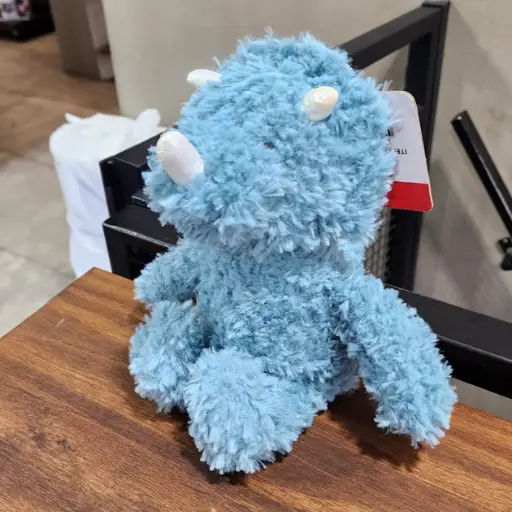 🐾 Diseño divertido y seguro: Dinosaurio azul con cuernitos, ideal para juegos y siestas.
