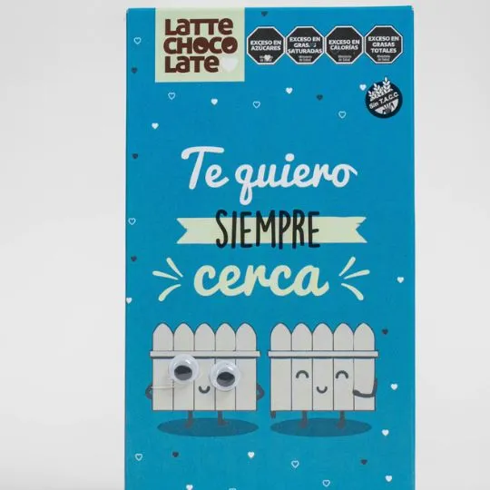 Tableta de chocolate de la linea lattechocolate de 60 gr sabor a mani con chocolate. Cada tableta con una frase diferente especialmente pensada para enamorar. Podes escribir tu dedicatoria en el dorso del packaging.
